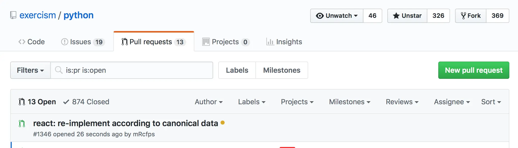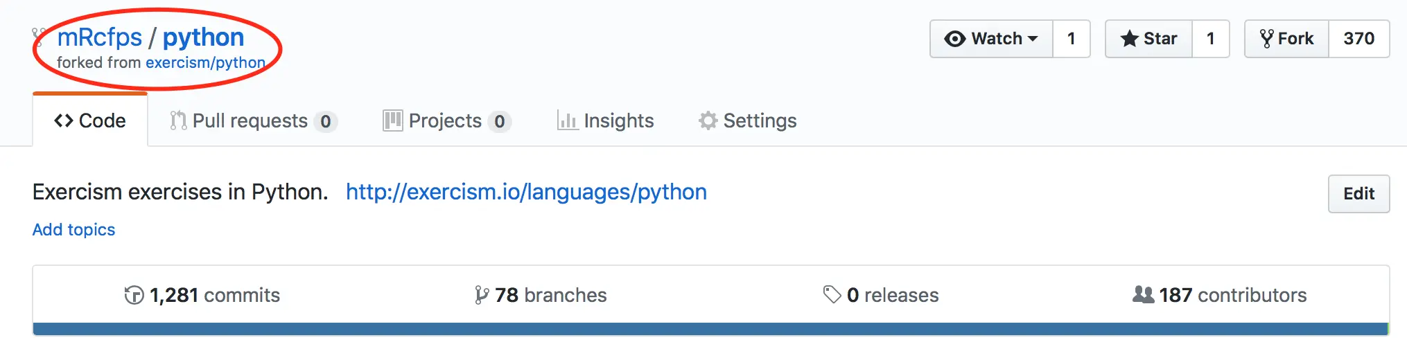 在和世界各地的小伙伴们愉快地玩耍了十来天之后,我觉得可以为这个社区贡献些什么。由于我比较擅长 Python,所以决定为 exercism/python 这个仓库贡献代码。我知道很多朋友都是在“单机模式”下使用 GitHub ——一个人默默地维护自己的仓库,却始终没有和他人互动乃至协作过。接下来我将分享第一次踏入开源世界、“联机”使用 GitHub 的体验,并将对应 GitHub Flow 手把手教会你怎么提交 Pull Request(下面简称 PR )。