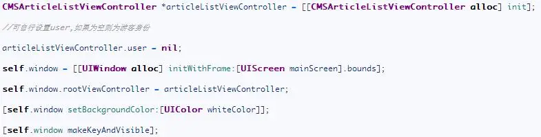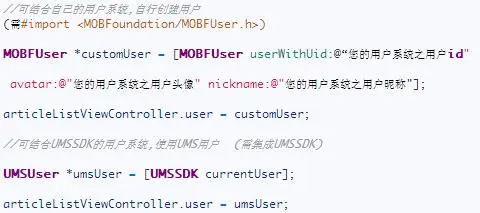 在设定CMSArticleListViewController的用户时,可使用自定义用户,也可使用UMS用户,示例代码如下: