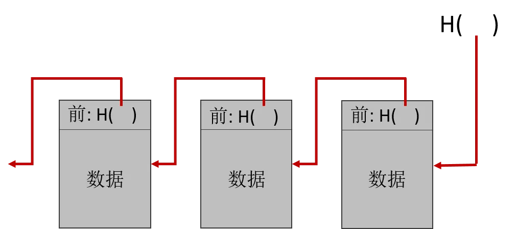 区块链里的每一个区块都有对应本区块的哈希指针,而除了创世区块(即第一个区块)之外,其他每个区块都存储了前一个区块的哈希指针,从而形成如下所示的一个链条,即区块链: