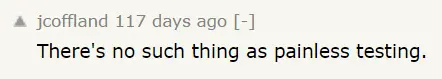 As you can see, their slogan promises a “painless” JavaScript Testing, but as “some guy from the comments” pointed out: