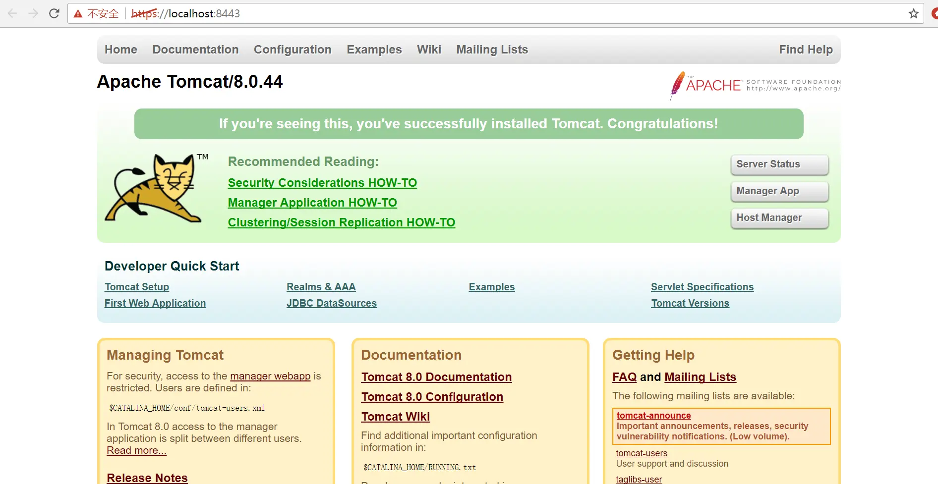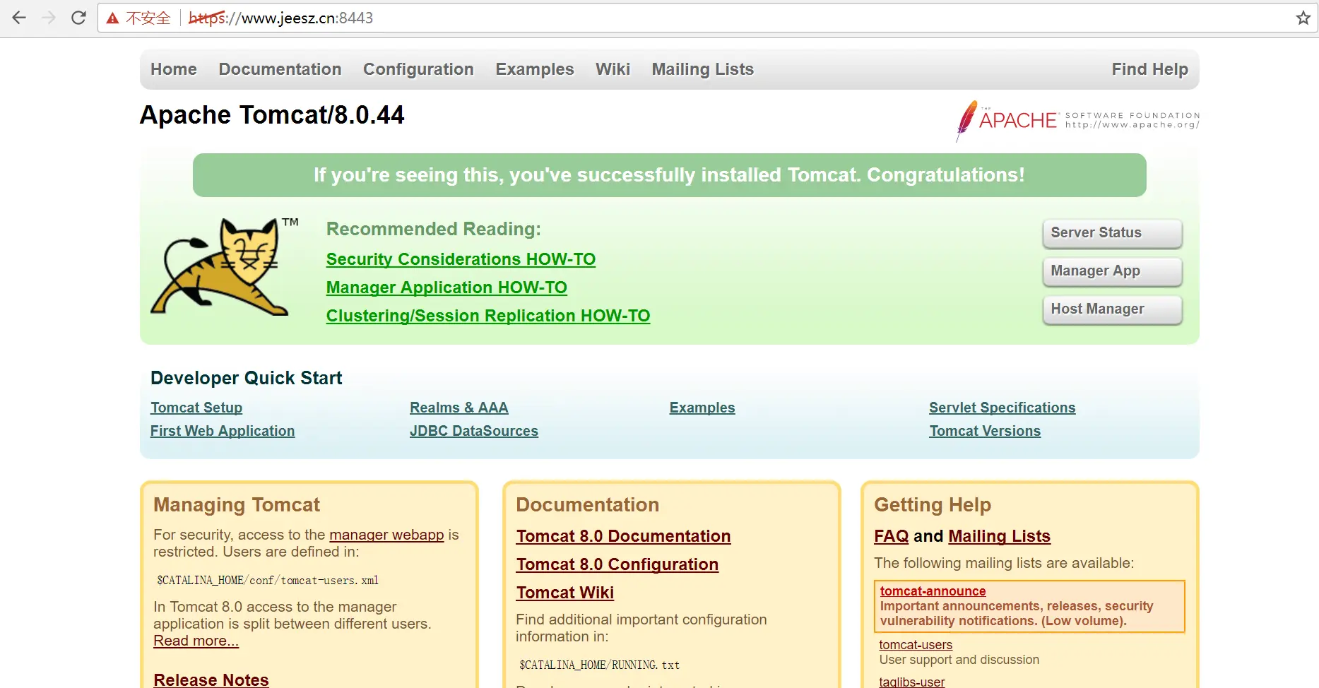 2.测试https的8443端口是否可以访问:https://localhost:8443