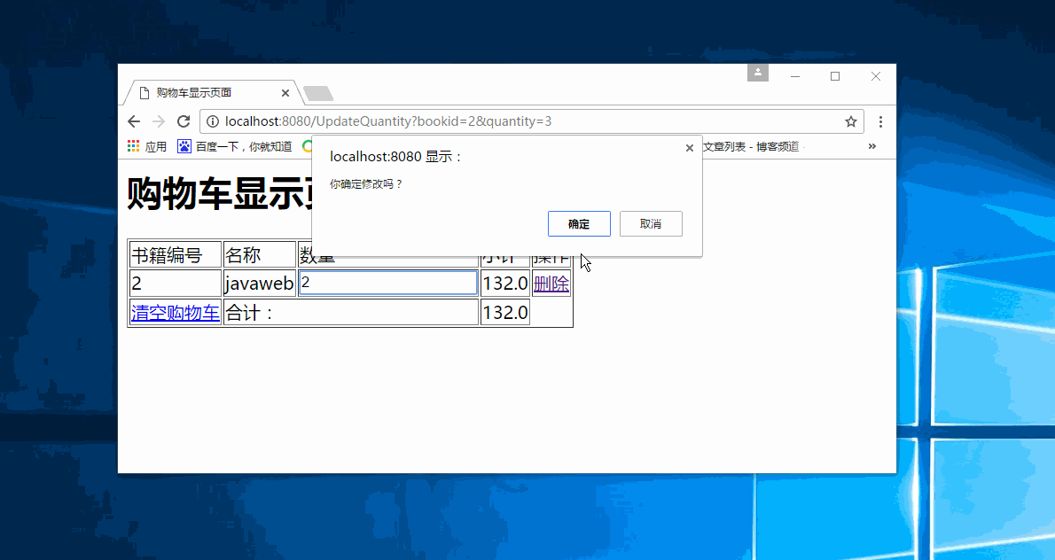 清空购物车的做法和上面是类似的!也是首先通过javaScript代码询问用户是否要清空,如果要清空就跳转到相对应的Servlet中把购物车的数据清空了!