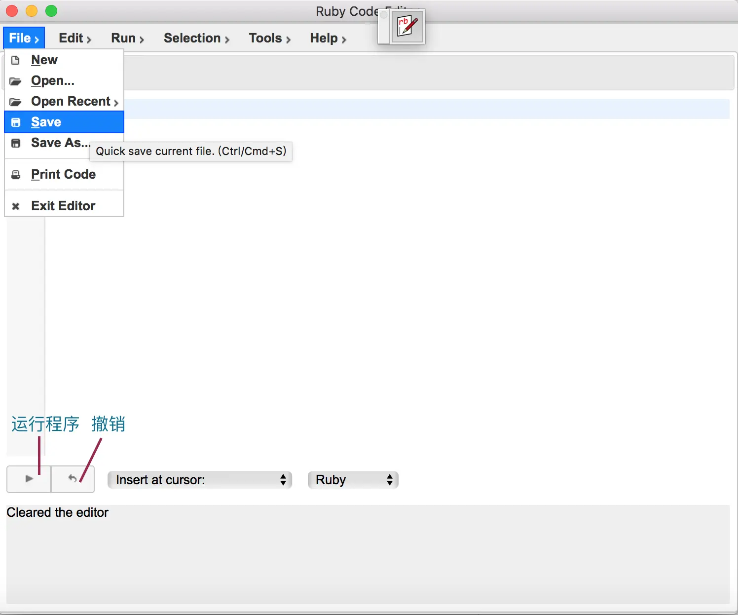 进行 Sketchup 二次开发的主要工具,是通过一款文本编辑插件rubyeditor,代码编写完成后,可通过点击运行按钮就可以在Sketchup界面看到运行的结果,控制台也会显示相关信息,比如报错信息等等。