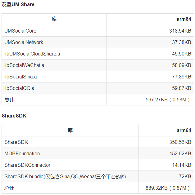 2.表格中均统计各自必须要的库大小(如果需要第三方库,则也应计算在内;不包含系统库)