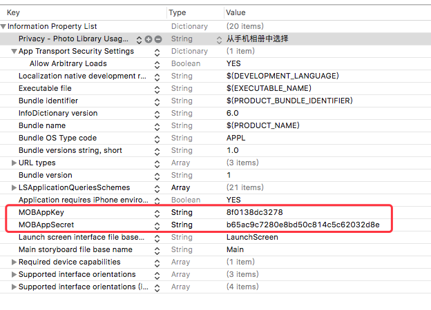 onConfiguration:^(SSDKPlatformType platformType, NSMutableDictionary *appInfo)