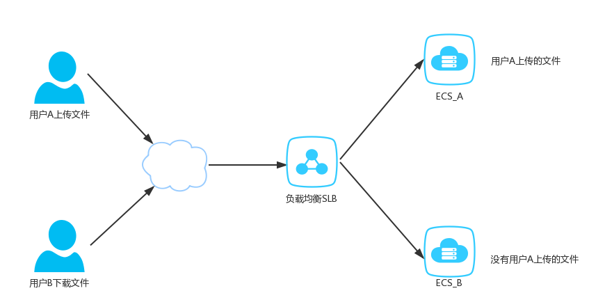 当用户A通过互联网上传文件时,经过负载均衡,随机或者定向分配到某个节点。但是当用户B去下载这个文件的时候,并不确定会向哪个节点发送请求,这样会导致用户存在一定几率下载不到的情况。