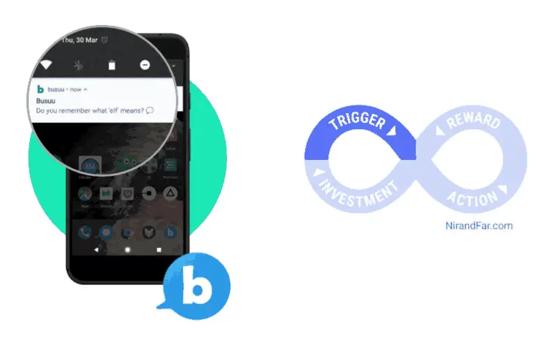 语言学习软件的 Busuu 的产品主管 Antoine Sakho 在他的 Medium 文章 中介绍了他们如何在他们的推送策略中应用 Nir Eyal的钩子模型 ,从而获得推送打开率300%的增长。他写道: