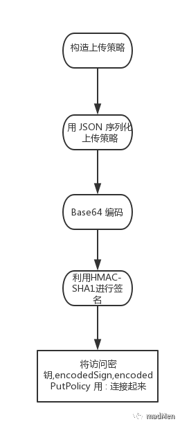 第一个方法还需要搭建服务器来颁发 token,显然这种方法不太经济,如果仅仅是为了这个图床搭建一个后端服务,就不太划算了。因此,我选择第二种,在客户端来生成 token。这种方法就需要你了解上传策略以及上传凭证。