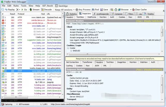 Fiddler是一个http协议调试代理工具,能够非常方便的查看HTTP通信数据。比如http请求头,响应头,传说数据大小等等。