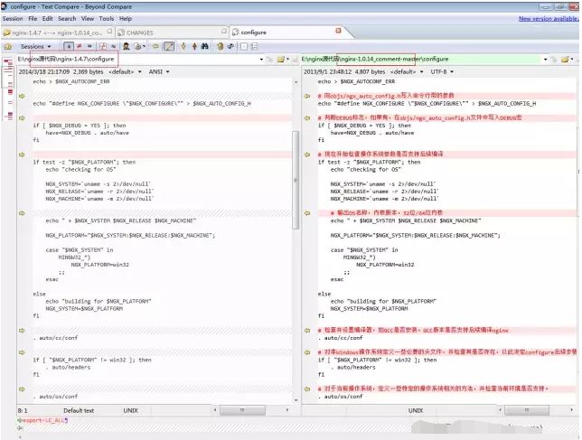 软件截图 (比较两个版本的Nginx源代码不同之处):