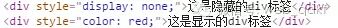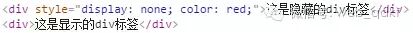 <div style="display: none;">这是隐藏的div标签</div><div>这是显示的div标签</div><script type="text/javascript"> $(function(){ $("div:hidden").css("color","red"); console.log($("div:hidden")); //结果:获取到隐藏的div });</script>