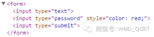 <form> <input type="text" /> <input type="password" /> <input type="submit" /></form><script type="text/javascript"> $(function(){ $(":password").css("color","red"); });</script>