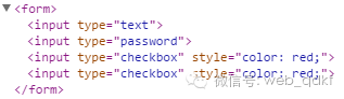 <form> <input type="text" /> <input type="password" /> <input type="checkbox" /> <input type="checkbox" /></form><script type="text/javascript"> $(function(){ $(":checkbox").css("color","red"); });</script>