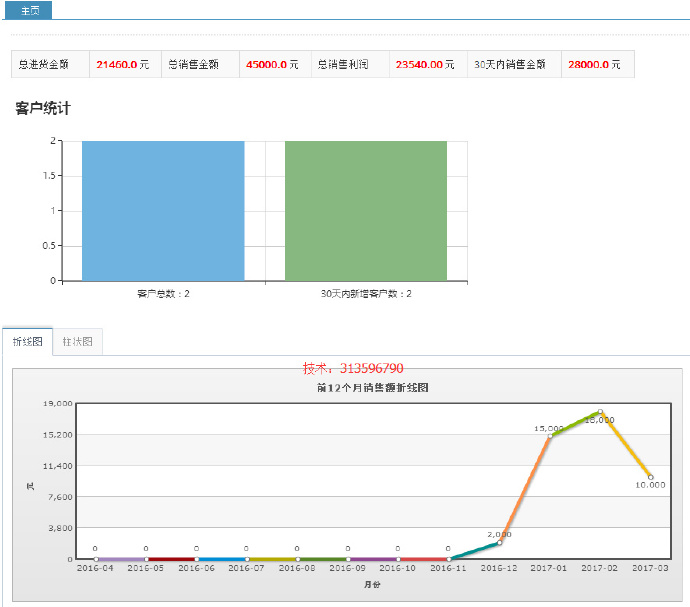 记录总进货额、总销售额、总销售利润、30天内销售金额 统计总客户数、30天新增客户数