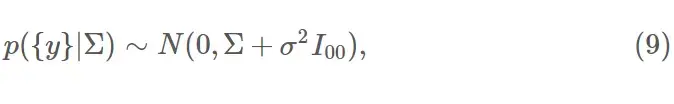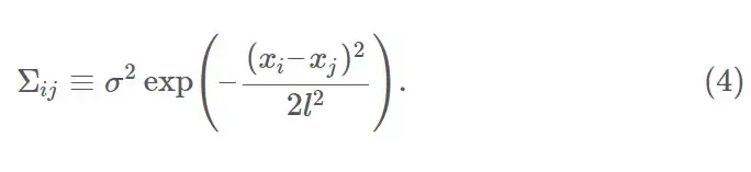 Σ的特殊形式是在 GP 建模时最需要建模者观察力和独创性的地方。对研究主题非常熟悉的研究者可以构建非常好且非常复杂的先验概率,而这种先验通常是各项求和的形式,其中每一项都在所讨论问题的数据基础上加入了一些物理相关的贡献。在这篇文章中,我们假设一个简单的公式,