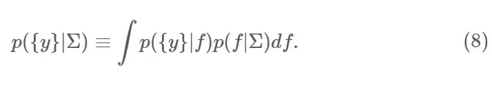 设置超参数的另一种常见方法是使边缘似然最大化。这就是说,我们试图最大化已关察样本的可能性,因而在可用超参数的基础上进行优化。具体来说,就是通过对未知的 f hat 进行积分来评估边缘似然 [4]。