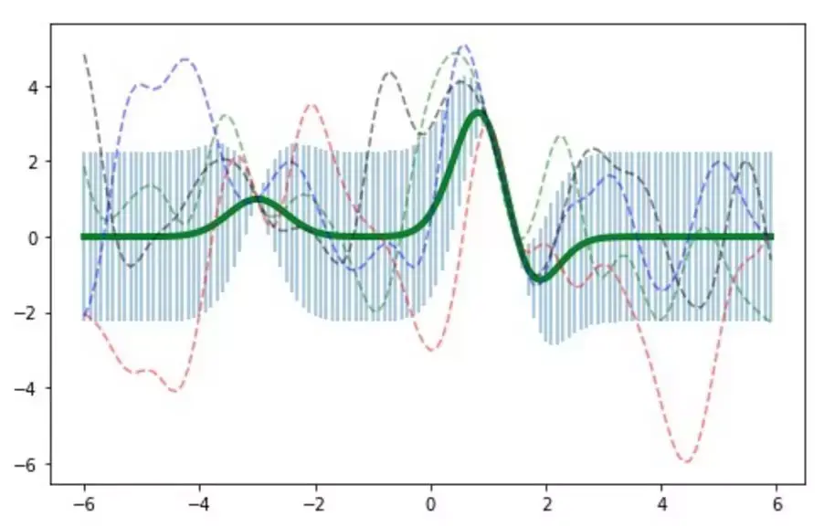 高斯过程(GP)是处理以下一般问题的一个工具:函数 f(x) 在 n 个点采样,并得到一组有噪声 [1] 的函数度量值 {f(xi)=y_i ± σ_i,i=1,…,n}。那么若给定这些可用的样本,且 f hat 为一些候选函数,我们是否就能估计出 f =f hat 的概率?