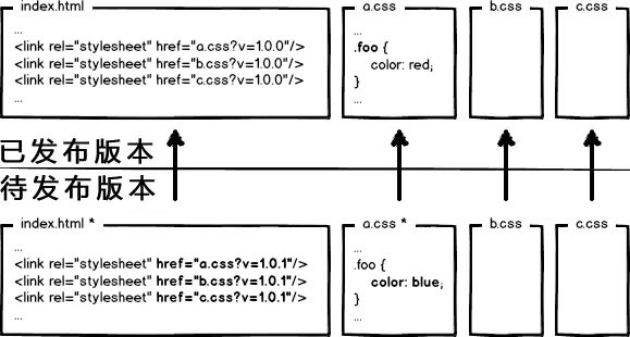 页面引用了3个css,而某次上线只改了其中的a.css,如果所有链接都更新版本,就会导致b.css,c.css的缓存也失效,那岂不是又有浪费了?!