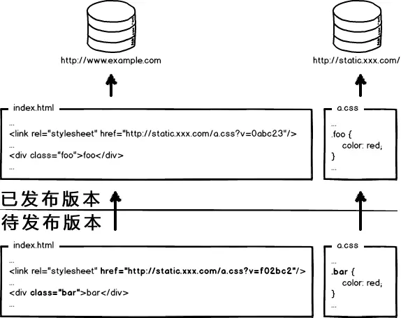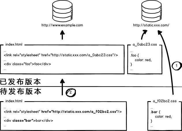 先部署页面,再部署资源:在二者部署的时间间隔内,如果有用户访问页面,就会在新的页面结构中加载旧的资源,并且把这个旧版本的资源当做新版本缓存起来,其结果就是:用户访问到了一个样式错乱的页面,除非手动刷新,否则在资源缓存过期之前,页面会一直执行错误。