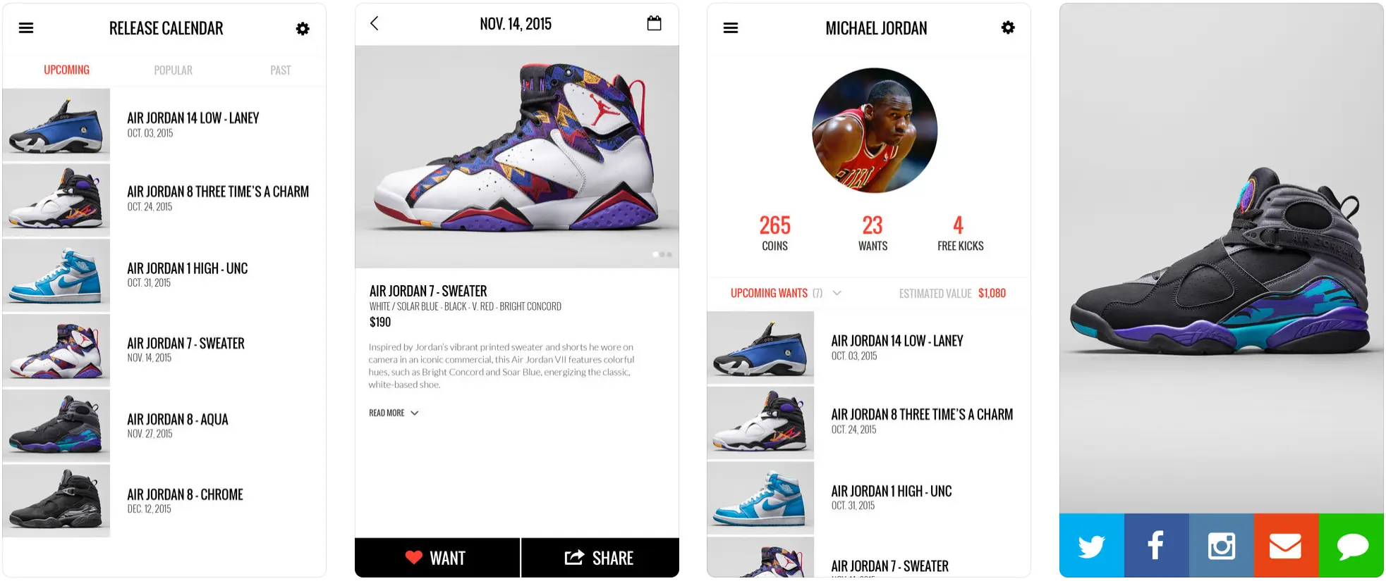 这个应用程序是是专为运动鞋发烧友设计的,主要是推送新款运动鞋的特别发布日期及其相关新闻。该程序是App Store下载量最大的运动鞋发布日历类应用程序,不仅是获得第一手运动鞋咨询,您还可以在这里购买您最喜爱的运动鞋。其推送会基于您的个人资料智能进行个性化的发布和价格估算。