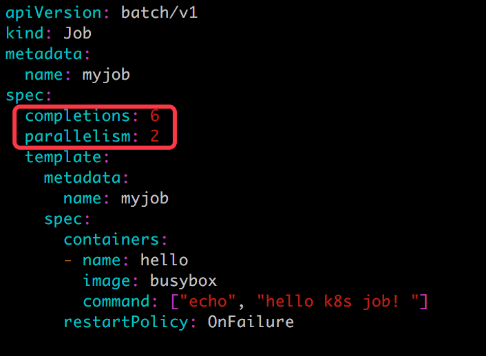 有时,我们希望能同时运行多个 Pod,提高 Job 的执行效率。这个可以通过 parallelism 设置。