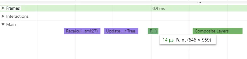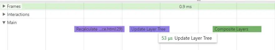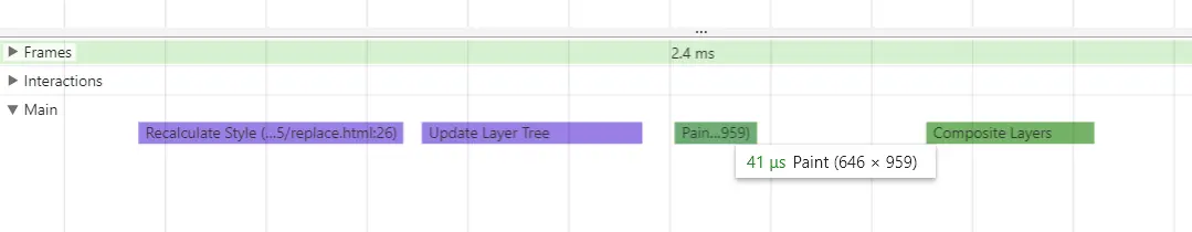 这里由于我变动的元素非常简单,只有一个简单的div,减少Paint过程带来的优化收益并不是很明显,如果是Paint过程是毫秒级别减少Paint过程的效果还是可观的。