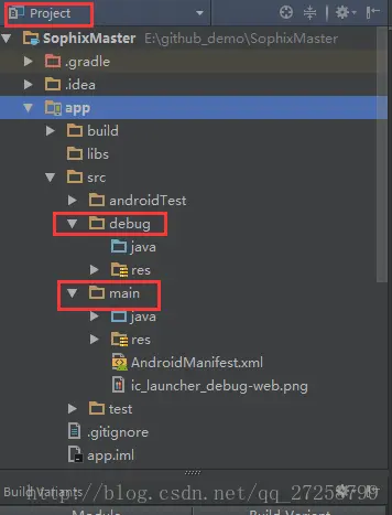 这里提示:图标名字重复,因为main源集里已经有ic_launcher图标了,不过没关系,我们在下一步选择debug源集: