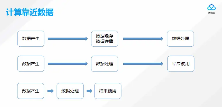 对于传统应用来说,数据在用户那里产生,传到云上进行处理,再进行相应的存储。这里说的缩短距离实际是把处理过程更加靠近用户,靠近用户就可以认为是边缘计算的过程。并且这里的靠近用户指的并不是加速网络速度,而是更多把计算下发,放到更靠近用户的位置。