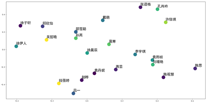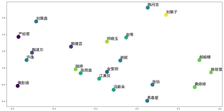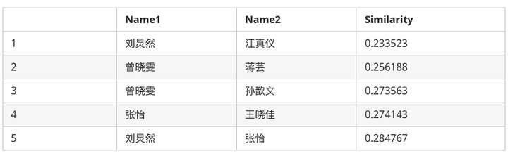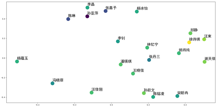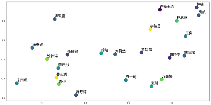 不过因为我们是将高维数据降维到二维必然会损失一些信息,二维的图像只能作为一个可视化的参考。我同时计算87位成员两两之间在高维空间的欧几里得距离,特此排出了公式照最像成员Top5