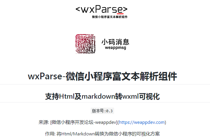 有位大牛开发了一个模板叫作wxParse,可以直接引入小程序使用。下面把大牛的github地址贴上来: