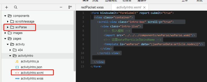 <template is="wxParse" data="{{wxParseData:article.nodes}}"/>