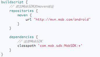 3. 如果使用MobSDK的模块会被其它模块依赖,请确保依赖它的模块也引入MobSDK插件,或在此模块的gradle中添加:
