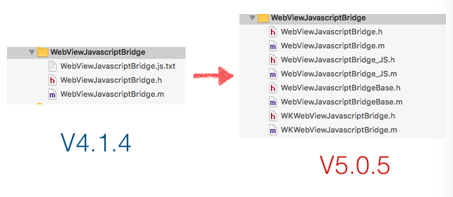 WebViewJavascriptBridge是一个有点年代的JS与OC交互的库,使用该库的著名应用还挺多的,目前这个库有7000+star。我去翻看了它的第一版本已经是4年前了,在版本V4.1.4以及之前,该库只有一个类和一个js 的txt文件,所以旧版本的WebViewJavascriptBridge 是非常容易理解的。而最新版的WebViewJavascriptBridge因为也要兼容WKWebView,所以里面也加入了两个新的类,一开始看的时候,会被它里面复杂的逻辑吓到,其实仔细阅读后,它还是非常简单的。