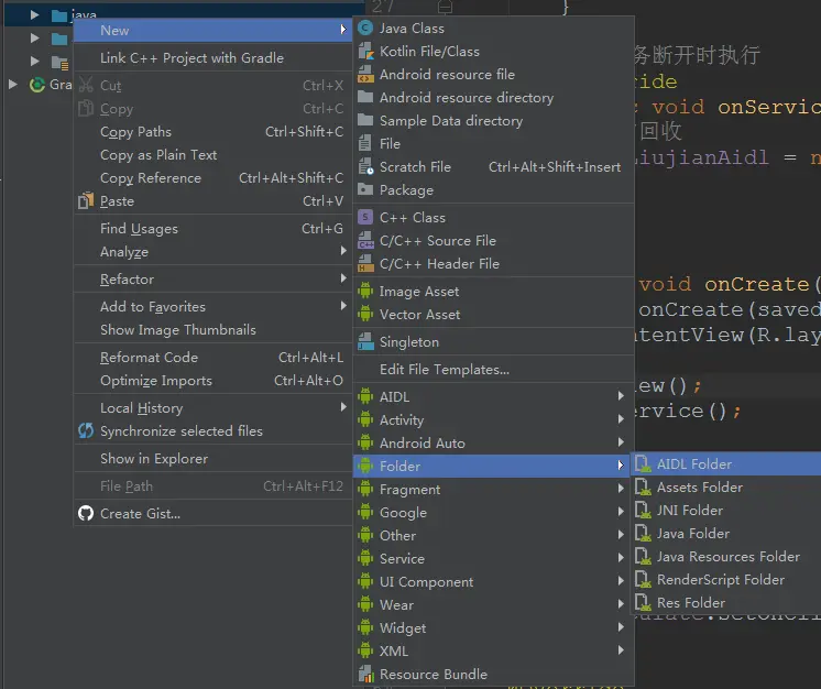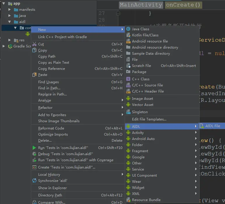 在java目录下创建aidl文件夹