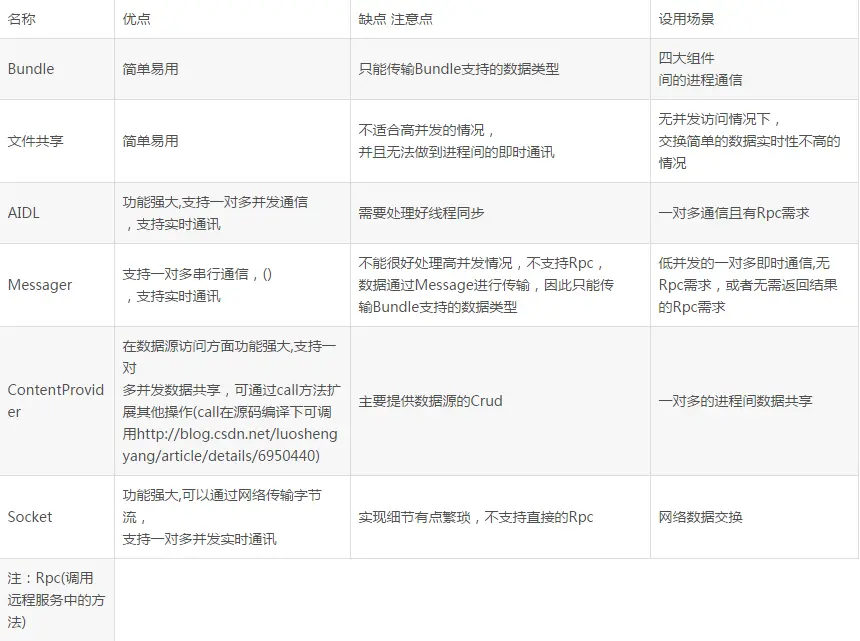 - AIDL中除了基本数据类型,其他类型的参数都必须标上方向:in(输入型参数)、out(输出型参数)、inout(输入输出型参数)