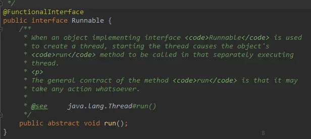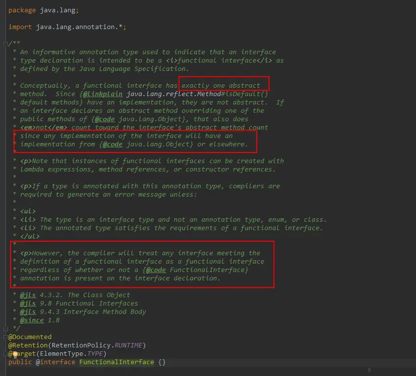 我们常用的一些接口Callable、Runnable、Comparator等在JDK8中都添加了@FunctionalInterface注解。