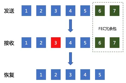 图5 FEC:在报文3丢失情况下,仍然可以依靠冗余报文恢复原始数据