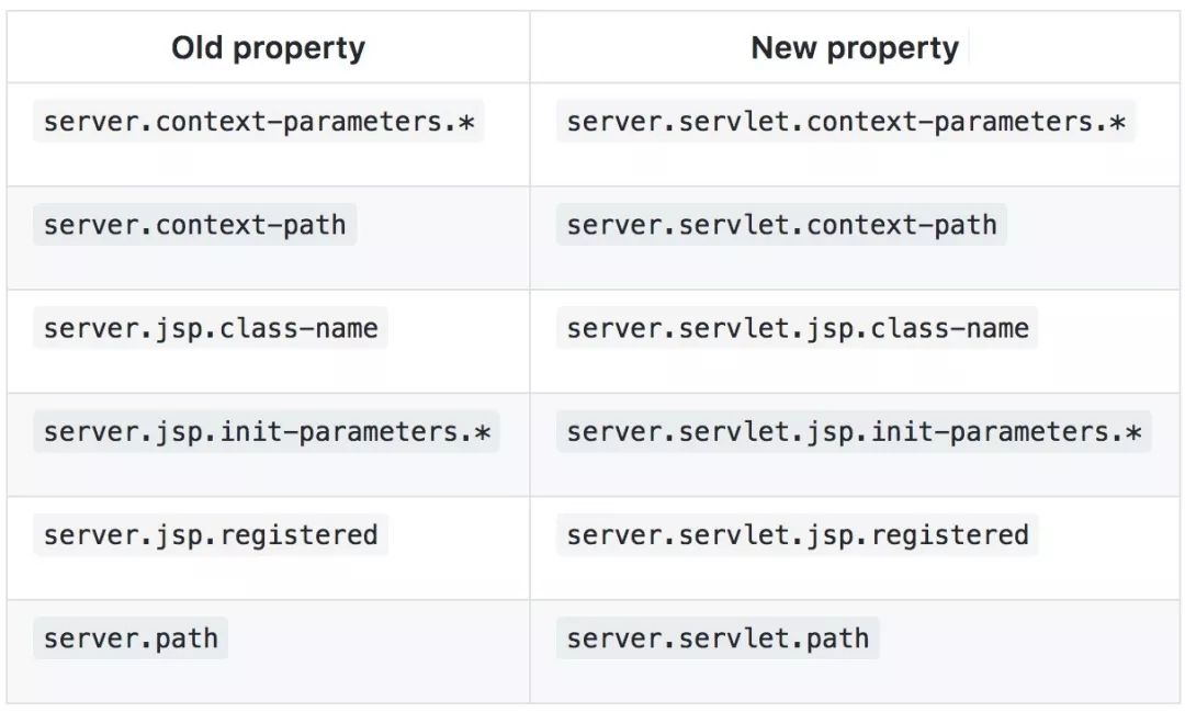 大量的Servlet专属的server.* properties被移到了server.servlet下: