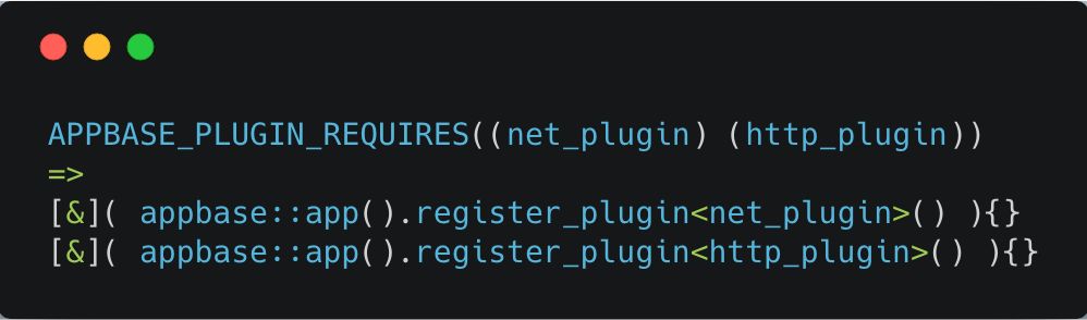 猜想只要插件类中包含了APPBASE_PLUGIN_REQUIRES宏,即是定义了 plugin_requires函数,再查看不同插件中的头文件,果不其然,注册到系统中的插件都包含了该宏,下面是3个不同插件的例子