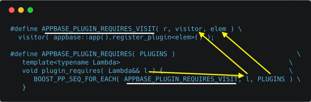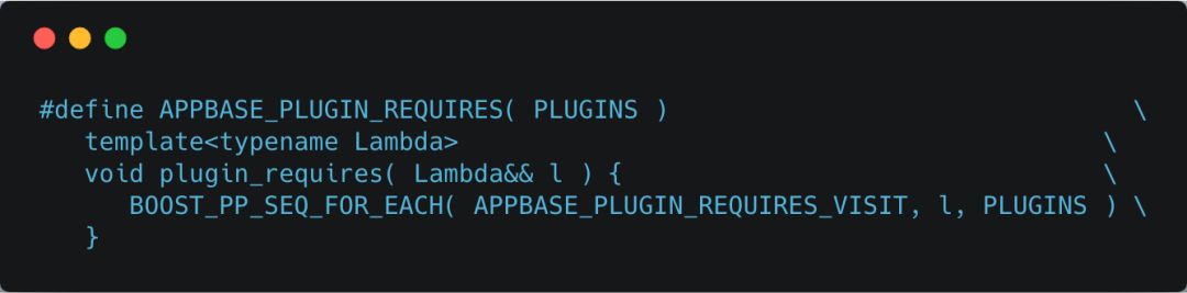 plugin_requires函数会调用 boost库中的一个宏——BOOST_PP_SEQ_FOR_EACH,该宏的用法参见http://t.cn/REqJmyG。