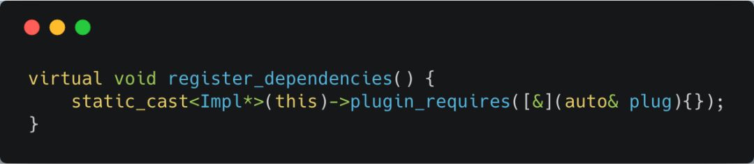 在注册一个插件之间,先把该插件所依赖的其他插件注册到系统中。且无论依赖多少个插件,你只需要写一行代码。