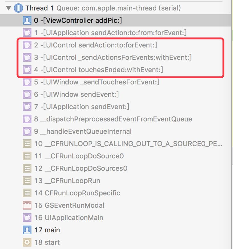可以看出所有的UIKit中的控制,触发点击事件的时候都会执行