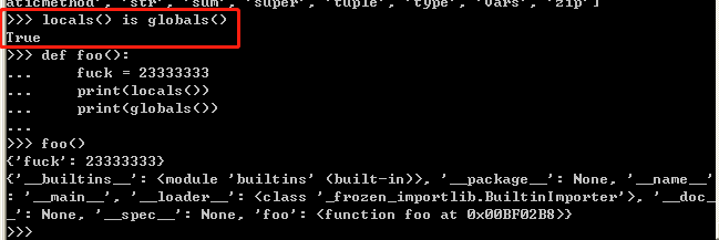 在文件级别而不是在函数中调用locals()查看名字时,与globals()的返回值相同。