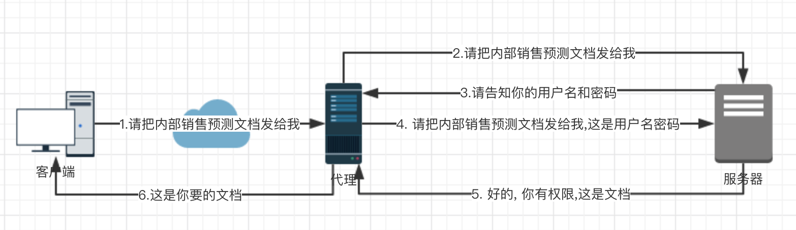 代理作为web结构中的实体, 也可以为用户提供认证的功能.示意图如下: