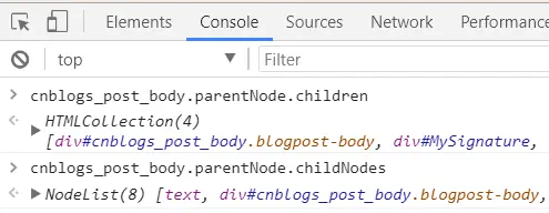 首先定义一个 allChildren 变量来存储 item3 的父节点所有的子元素。 获取子元素 DOM 有两个 API ,node.parent.children 和 node.parent.childNodes 。应该选择哪个呢?parent.childNodes:获取节点,不同浏览器表现不同;