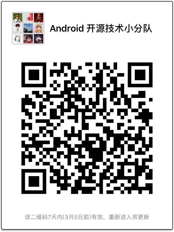 有兴趣参与此项目的小伙伴可以扫码入群,本群主要讨论Android Framework、主流开源框架以及Android工程化相关技术,本群不是一个读者群,希望大家每个人都能成为项目的参与者。如果微信群提示满额了可以 加我微信 allenwells 邀请入群。