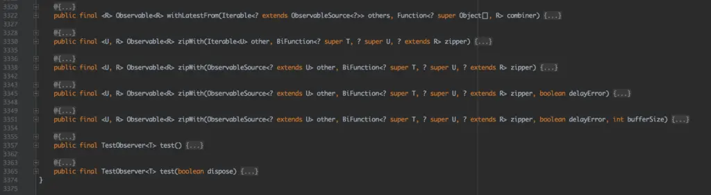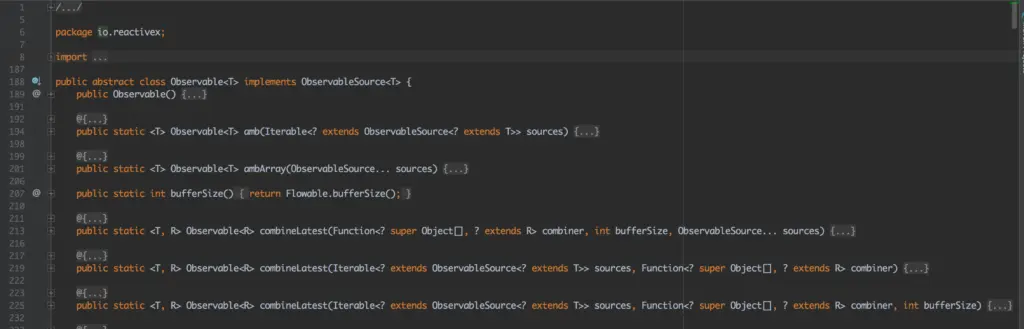 这是 Observable 的代码,如图所示代码总行数为 3000 多行。 正如我们所知,Observable 通常使用其不同的方法将数据转换为流,下面我给出一个简单的例子。