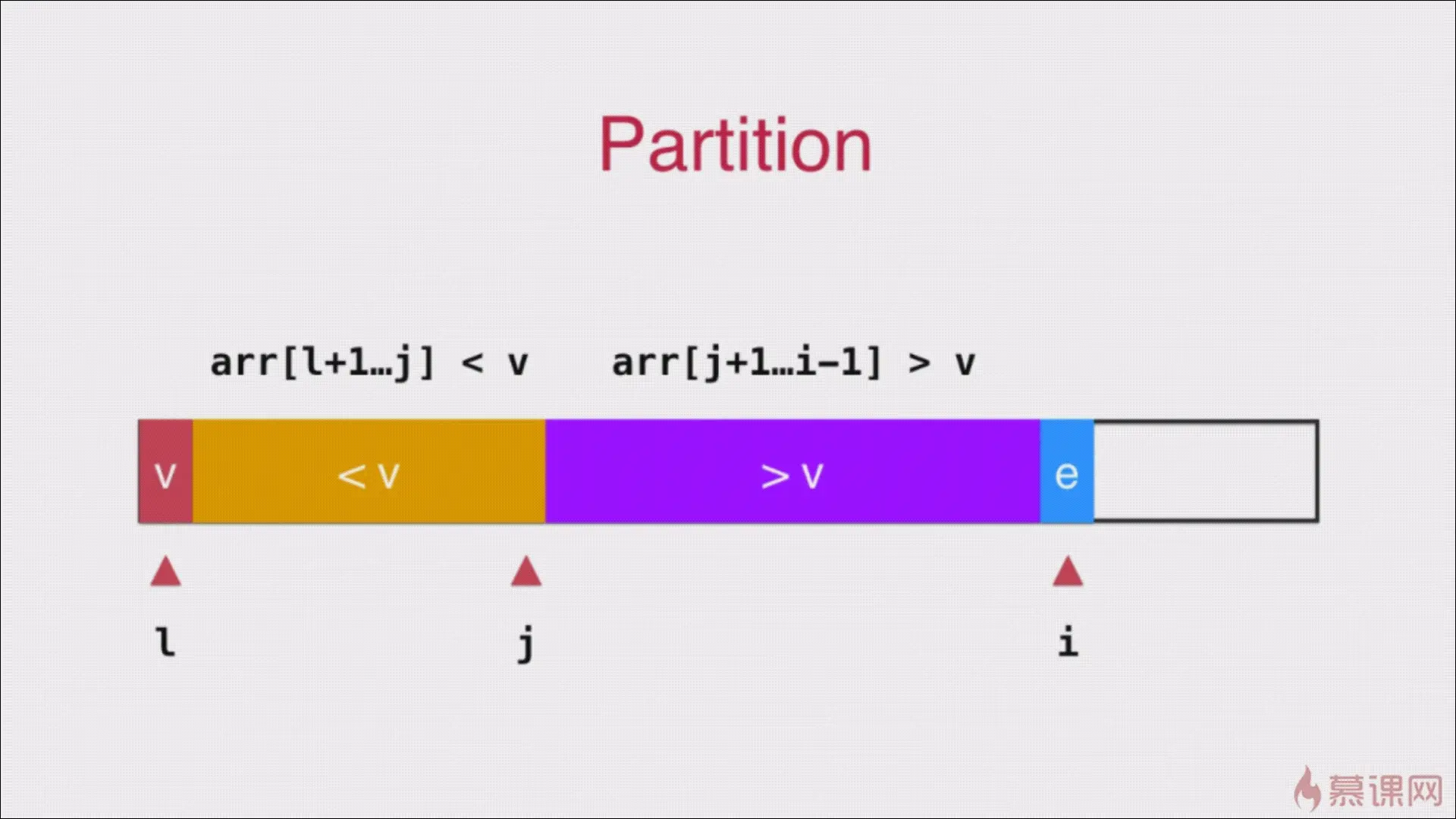 arr[l + 1 ... j] < v , arr[j+1,i) >= v就满足了,接下来我们只需要递归的去考察 arr[l + 1 ... j] 和 arr[j+1,r] 即可。