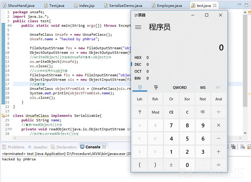 一个Identity属性为Visitors的对象被储存进了employee1.db,而反序列化操作就是从二进制文件中提取对象: