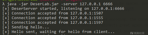 在DeserLab的Github项目页面下载DeserLab.jar命令行下使用java -jar DeserLab.jar -server 127.0.0.1 6666开启本地服务端。